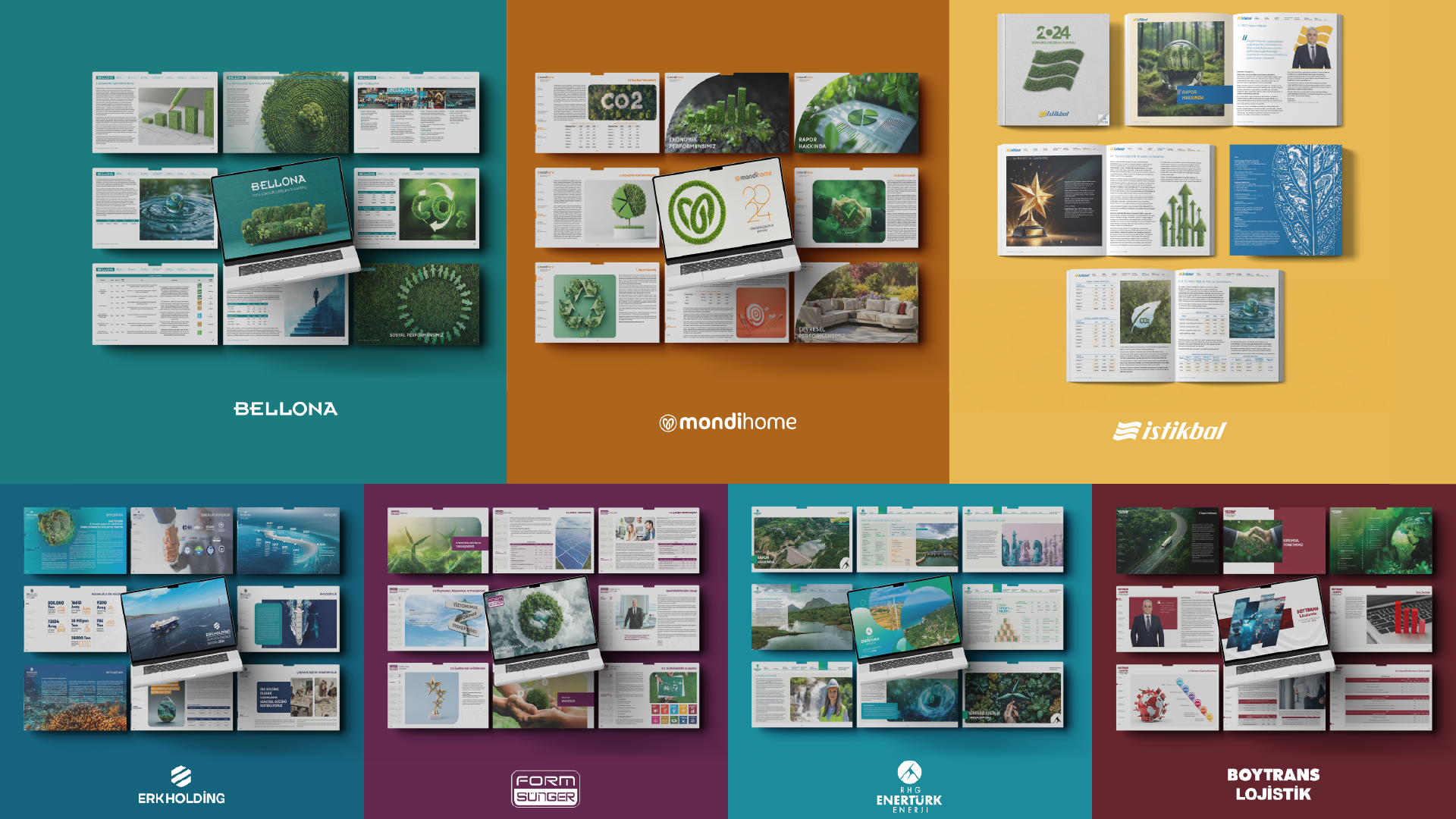 Kurgu Medya olarak sürdürülebilirlik raporlarını, kurumun genel iletişim diliyle uyumlu, tek sesli ve tutarlı bir bütün olarak ele alırız. Tasarımı; estetik bir mesele olmanın ötesinde, mesajın doğru okunması, doğru anlaşılması ve güven vermesi gereken bir iletişim alanı olarak görürüz.
